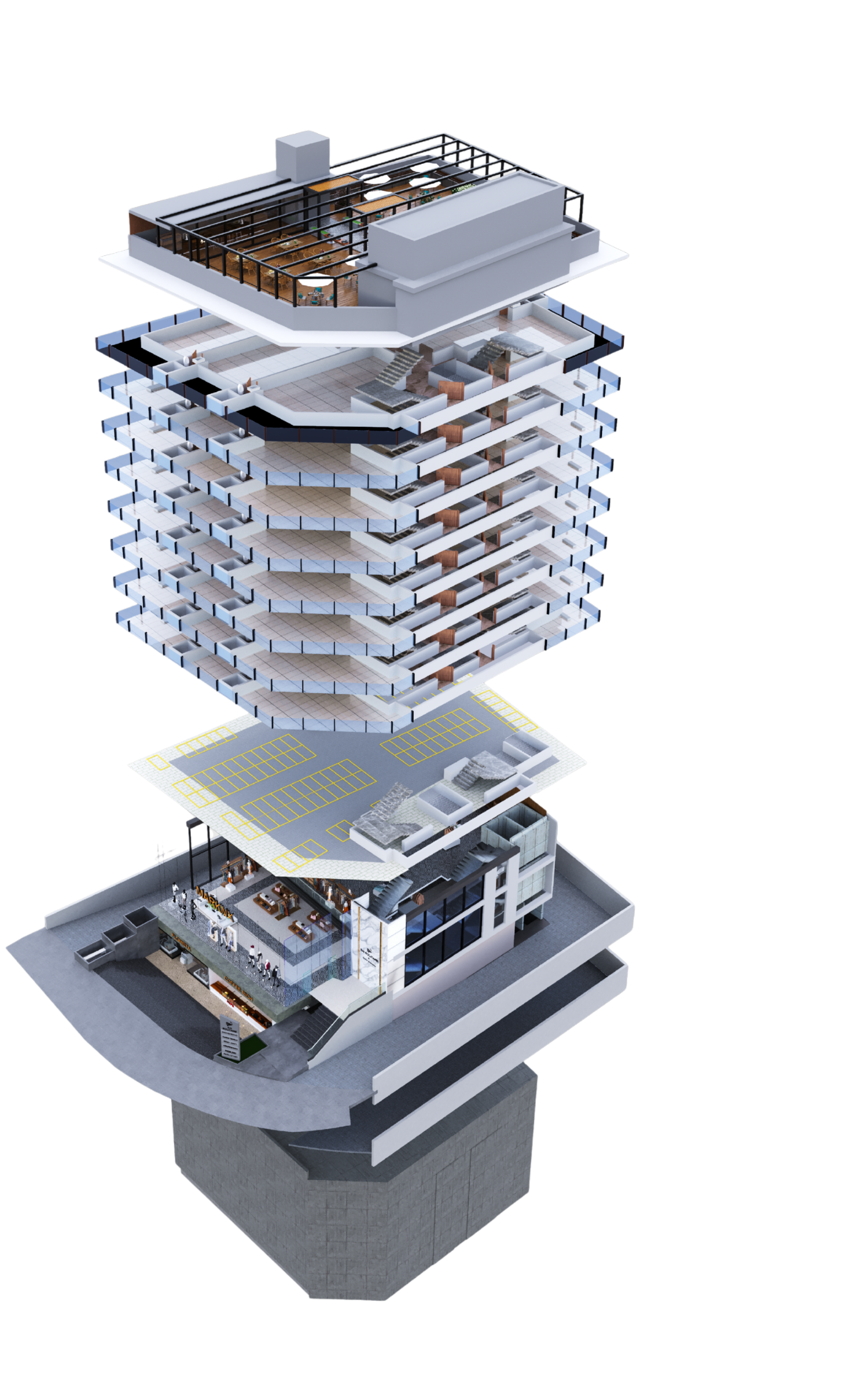 The 3rd to 10th floors host spacious, elite office chambers crafted to support growth-driven businesses.