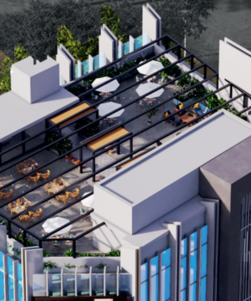 At the crown of Sai Solitaire sits a rooftop restaurant that blends panoramic views with sophisticated dining.